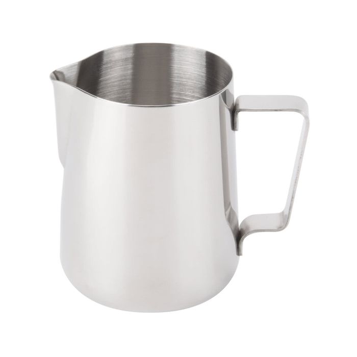 Helps create a smooth foam consistency. Pouring spout for accurate pouring. Flat sturdy base. Sleek mirror finish. Dishwasher safe under normal conditions.