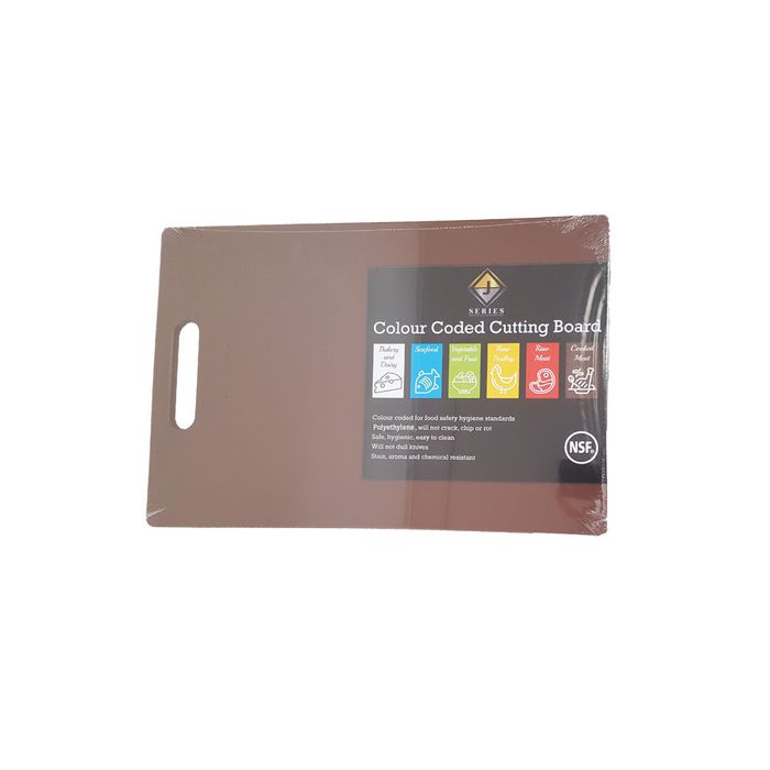 This brown chopping board is designed to meet food safety and hygiene standards, making it ideal for professional and home kitchens. Colour-coded brown for cooked meats, it ensures proper separation of food types, helping to prevent cross-contamination. Certified for use in professional food service, this board is a dependable choice for any food preparation environment. Cutting board key features: Made from high-quality polyethylene that won’t crack, chip, or rot. Safe, hygienic, and resistant to stains, odours, and chemicals. Gentle on knives (will not dull your knife) and easy to clean. Dishwasher safe for quick and simple maintenance. Size: Length: 300mm Width: 450mm Height: 12mm