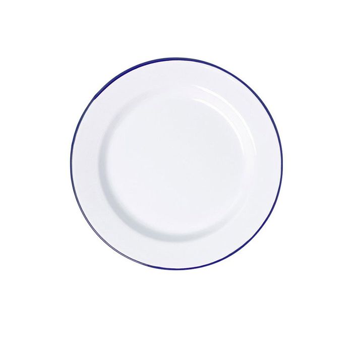 Enamel plates with coloured rims. Falcon dinner plates look great in the dining room and are ideal for use in wood fire pizza ovens, and as always enamel plates are still very good camping plates too. Perfect for dinner parties or camping trips. As well as timeless elegance, Falcon Enamelware has enduring strength. Enamelware is porcelain fused onto heavy-gauge steel, giving it many admirable qualities - durability, smoothness, and chemical-resistance. It can assume brilliant, long-lasting colours, and cannot burn. If you drop it, it may chip but it won’t break. Dishwasher-safe and oven-safe up to 530F / 270C, it can also be used on gas and electric hobs. Features: Dinner Plate. Enamelware. Colour: White. Size: 22cm x 2cm deep. Available in four sizes.