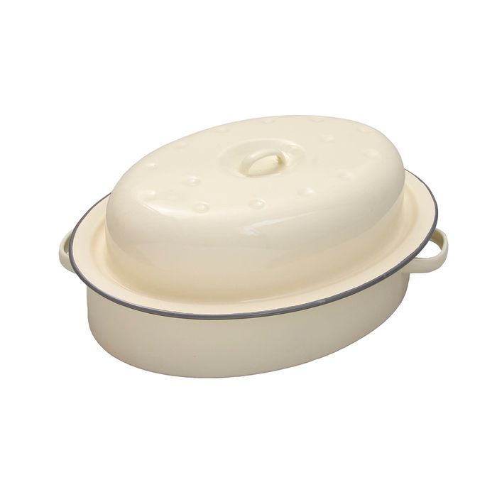 Roaster Oval, Enamelware, Cream, 14 x 33.5 x 24.5cm (050037)