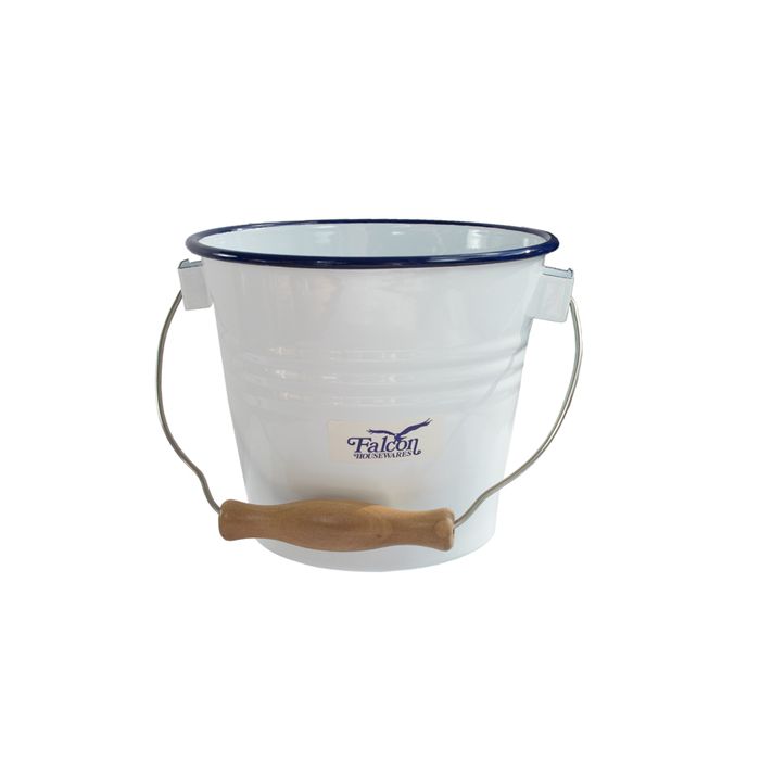 Falcon Bucket. As well as timeless elegance, Falcon Enamelware has enduring strength. Enamelware is porcelain fused onto heavy-gauge steel, giving it many admirable qualities - durability, smoothness, and chemical-resistance. It can assume brilliant, long-lasting colours, and cannot burn. If you drop it, it may chip but it won’t break. Dishwasher-safe and oven-safe up to 530F / 270C, it can also be used on gas and electric hobs. Features: Falcon Bucket. Enamelware. Colour: White. Size: 16cm.