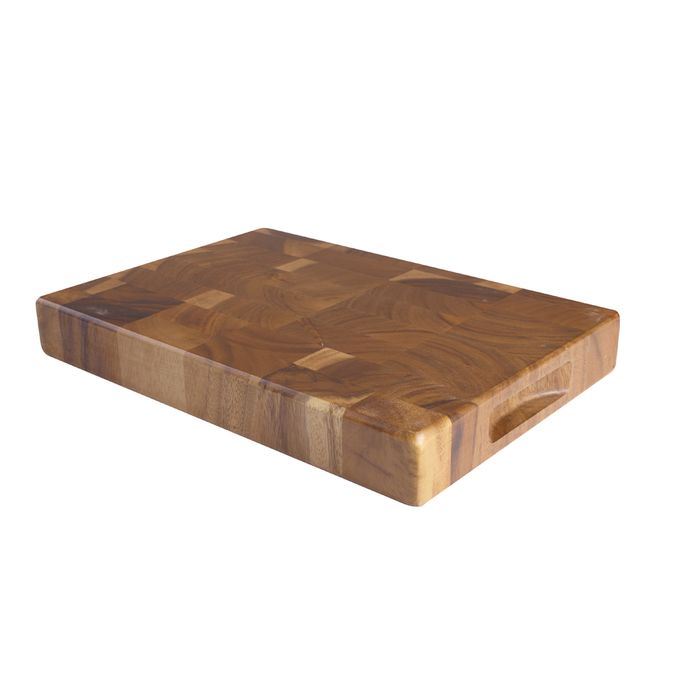 T&G Tuscany Large Rectangular End Grain Board The T&G Tuscany Large Rectangular End Grain Board is crafted to meet the demands of daily kitchen tasks while adding a natural, rustic touch to your space. Made from Acacia wood, it’s ideal for chopping, slicing, or serving appetisers and platters. The end grain construction is gentle on knives Dimensions: L: 450mm. W: 300mm. H: 40mm. Material: Acacia wood Care Instructions: Hand wash in warm water with mild detergent. Do not soak. Dry immediately and oil occasionally with T&G Food Safe Wood Oil or mineral oil. Not dishwasher safe. Perfect for preparing meals or serving guests.