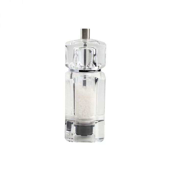 Cubic Salt Mill T&G Woodware T&Gs Classic mills are available in a choice of different materials and are designed to reflect all tastes. All T&G Classic mills have fully adjustable ceramic mechanisms. No metal grinders to corrode, no plastic grinders to wear out. Each Classic mill comes with a lifetime mechanism guarantee. Dimensions H: 140mm., Material Clear Acrylic, Lifetime Mechanism Guarantee, Care Clean with a damp cloth, dry immediately.