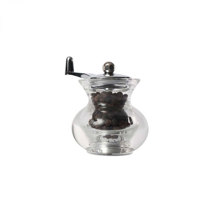 Cauldron Pepper Mill T&G Woodware T&Gs Classic mills are available in a choice of different materials and are designed to reflect all tastes. All T&G Classic mills have fully adjustable ceramic mechanisms. No metal grinders to corrode, no plastic grinders to wear out. Each Classic mill comes with a lifetime mechanism guarantee. Dimensions H: 90mm., Material Clear Acrylic, Lifetime Mechanism Guarantee, Care Clean with a damp cloth, dry immediately.