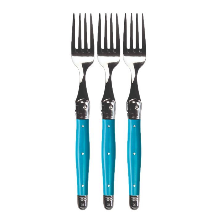 Andre Verdier Laguiole Fork - Blue - Sold in 3s Verdier Cutlery is made in Laguiole, France by Andre Verdier. This Fork is made of stainless steel blades and resin handles, complete with the iconic Laguiole Bee. Authentic Laguiole Cutlery: 100% made in Laguiole, France by Andre Verdier. Stainless steel blades with coloured resin handles. Classic Laguiole Bee on each handle. Hand wash recommended Great addition to your tableware collection.