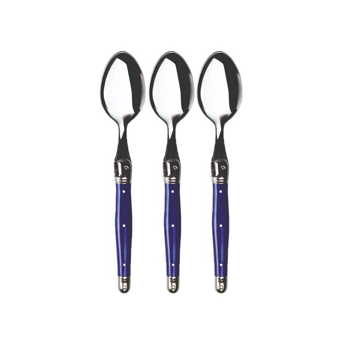 Andre Verdier Laguiole Teaspoon - Violet - Sold in 3s Verdier Cutlery is made in Laguiole, France by Andre Verdier. This Teaspoon is made of stainless steel blades and resin handles, complete with the iconic Laguiole Bee. Authentic Laguiole Cutlery: 100% made in Laguiole, France by Andre Verdier. Stainless steel blades with coloured resin handles. Classic Laguiole Bee on each handle. Hand wash recommended Great addition to your tableware collection.