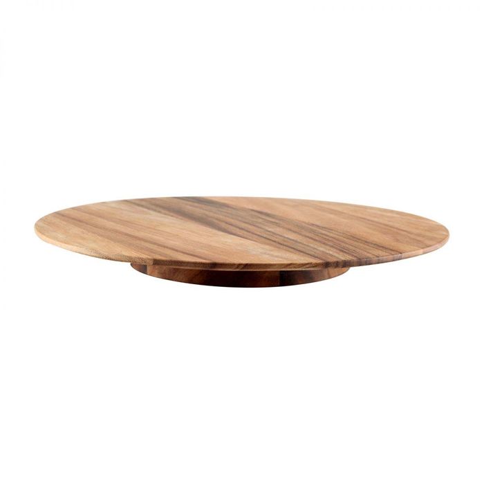 Baroque medium sized revolving table platter in rustic acaia wood. Lazy so and so D365 x H37mm Lazy Susan's are super handy being a spinning server for the table top. Perfect for sitting in the middle of the dining table and allowing your guests to easily spin the turntableto reach what they want from it. Great for serving shared platters, or for easy selection to multiple condiment options. Diameter 365mm Acacia wood top and bottom with a smooth operating ball bearing mechanism between. Not for the dishwasher!