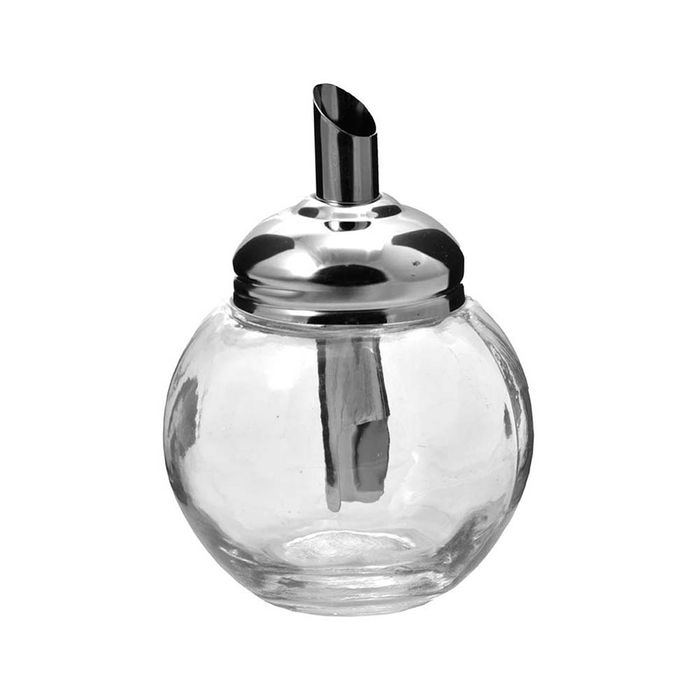 The commercial grade sugar pourer features a strong steel lid and pourer. The onion shape sugar pourer meets the rigorous use within the commercial industry. Cleaning the KH Sugar Pourer is easy, either hand wash or clean in any commercial dishwasher under normal cleaning conditions. Material (Top): Metal Material (Body): Glass Capacity: 285ml Height: 115mm