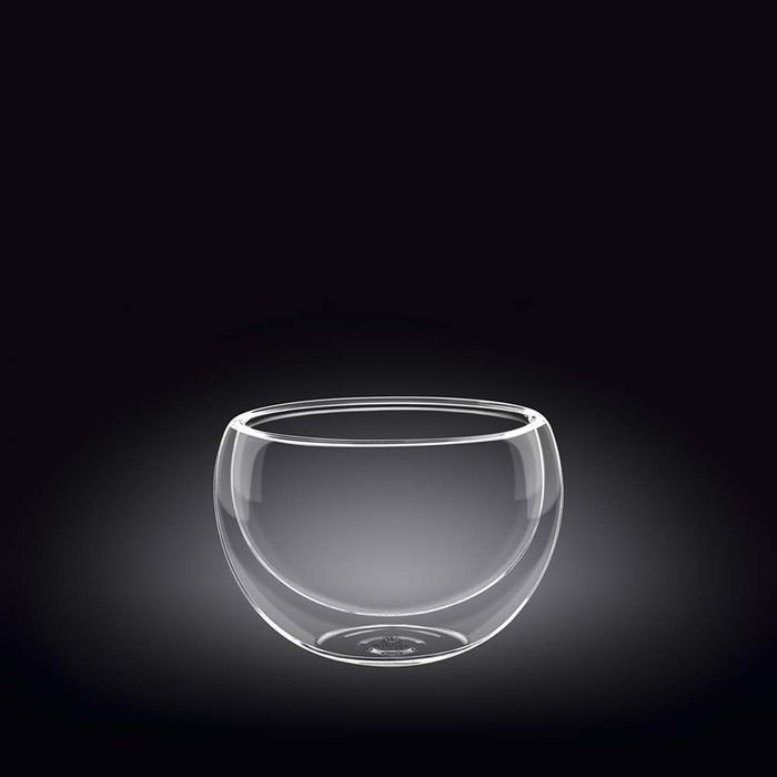 BOWL 8 FL OZ | 250 ML Collection Name: Double Walled Shape: BOWL With : Capacity : 250 ML Dimensions : Made from : THERMO Borosilicate glass Priced Per : EA Packaging : Double wall construction for superb hot or cold temperature insulation for your chosen food or drink content. The WILMAX Thermo Glass collection is versitile and practical. Made of heat-resistant borosilicate glass, its main advantage is its thermal quality (ability to withstand extremes of temperature). The products are safe to use on electric or gas stovetops (with a flame seperator and on a low flame) The Collection includes tea and coffee products, storage jars, oil bottles, as well as double wall bowls and much more. The thermo glass dishes are lightweight, elegant and they undoubtedly decorate. The clear glass emphasises the beauty of the content, transforming it into a visual experience! For Carton lots order in mutiples of: 72