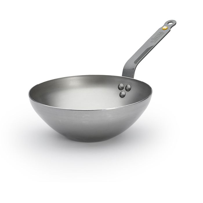 De Buyer WOK MINERAL B Ø24CM Perfect wok for healthy and quick cooking of food, ideal for natural and dietetic cuisine with little use of fat. Riveted iron flat handle French-style curved, and riveted stainless steel handle : unbreakable; easy handling and ergonomic. Mineral B utensil in heavy quality iron coated with beeswax: protective finish against oxidation, facilitates seasoning. Natural non-stick properties, no coating : gradual seasoning of the wok. Undeformable thick skirt. Excellent caramelization of food. Heats up quickly, uniform diffusion of heat, enables the Maillard reaction. Small flat bottom: very stable. Tip: Season when first used. Preheat using a little fat. Care: deglaze, rinse with warm water, dry and oil lightly. Store in a dry place. Do not use detergents or put in the dishwasher. All cook tops including induction. Interior Diameter 24cm Interior Length 0cm Interior Width 0cm Interior Height 9cm Interior Capacity 0cm Exterior Diameter 24cm Exterior Length 43.7cm Exterior Width 0cm Exterior Height 17cm Bottom Diameter 9cm Bottom Thickness 0cm Net weight 1.6kg