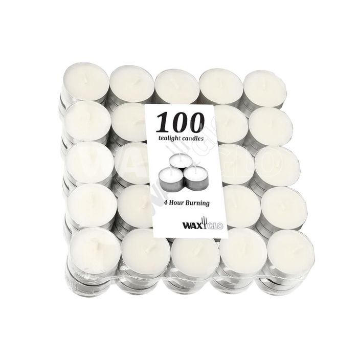Tealight Candle Pack - 4 hour - 100 Pack x 8 Waxglo tealights are a great choice for adding warmth and light to your space. Designed for clean and long burning, these tealights work well for accent lighting or heating scented oils. Each candle offers up to 4 hours of burn time, a perfect addition to your home decor. Enjoy the soft glow of these high-quality tealights, ideal for creating a cosy and inviting setting.