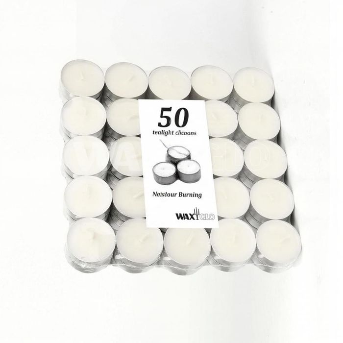 Tealight Candle Pack - 4 hour - 50 Pack. Carton lot of 16 packs. 800 tealights! Waxglo tealights are a great choice for adding warmth and light to your space. Designed for clean and long burning, these tealights work well for accent lighting or heating scented oils. Each candle offers up to 4 hours of burn time, a perfect addition to your home decor. Enjoy the soft glow of these high-quality tealights, ideal for creating a cosy and inviting setting.