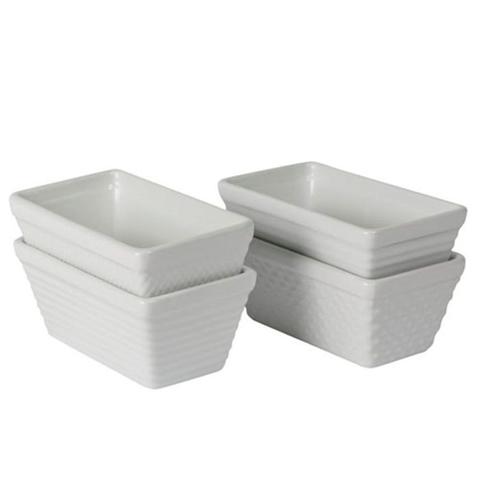 BIA Cordon Bleu has been crafting superb stoneware and porcelain dinnerware, serveware and bakeware for over 68 years. From contemporary patterns to classic designs, these ceramics are created by skilled artisans to ensure the highest quality product. If you have a taste for something with a little pizzazz, BIA Cordon Bleu offers bowls and dishes with hand glazed, unique patterns and elegant designs. This bakeware is also available in a wide range of shapes and sizes to accommodate all your entertaining needs. Enjoy your favorite recipes with these 9 oz. Textured Individual Mini Loaf Pans. Made from high quality super white porcelain, these Loaf Pans are resistant to chipping, cracking and staining and complements any table setting. Create so many of your favorite recipes in these loaf pans and take them right to the table. From appetizers to bread, individual entrees to desserts - there are so many possibilities. Be creative and see what you can do. Features: Texture Mini Loaf Pans, Set of Four 14 x 5.5 x 8cm 250ml.